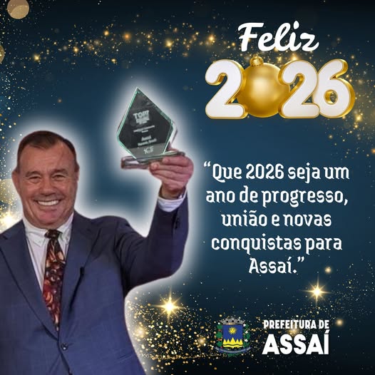Ao encerrarmos mais um ano, renovo meu agradecimento à população de Assaí pela confiança, parceria e participação na construção de uma cidade cada vez melhor.Que 2026 seja marcado pela união, pelo respeito, desenvolvimento e grandes transformações na qualidade de vida de todos os assaienses.