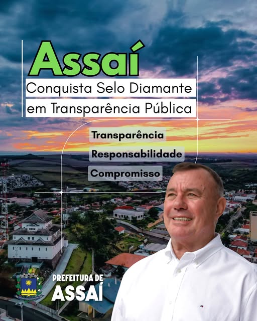 Mais uma conquista que reafirma o compromisso da gestão municipal com a seriedade e a responsabilidade na administração dos recursos públicos.A Prefeitura de Assaí recebeu, novamente, o Selo Diamante em Transparência Pública, o maior reconhecimento concedido às gestões que se destacam pela clareza, organização e fácil acesso às informações governamentais.