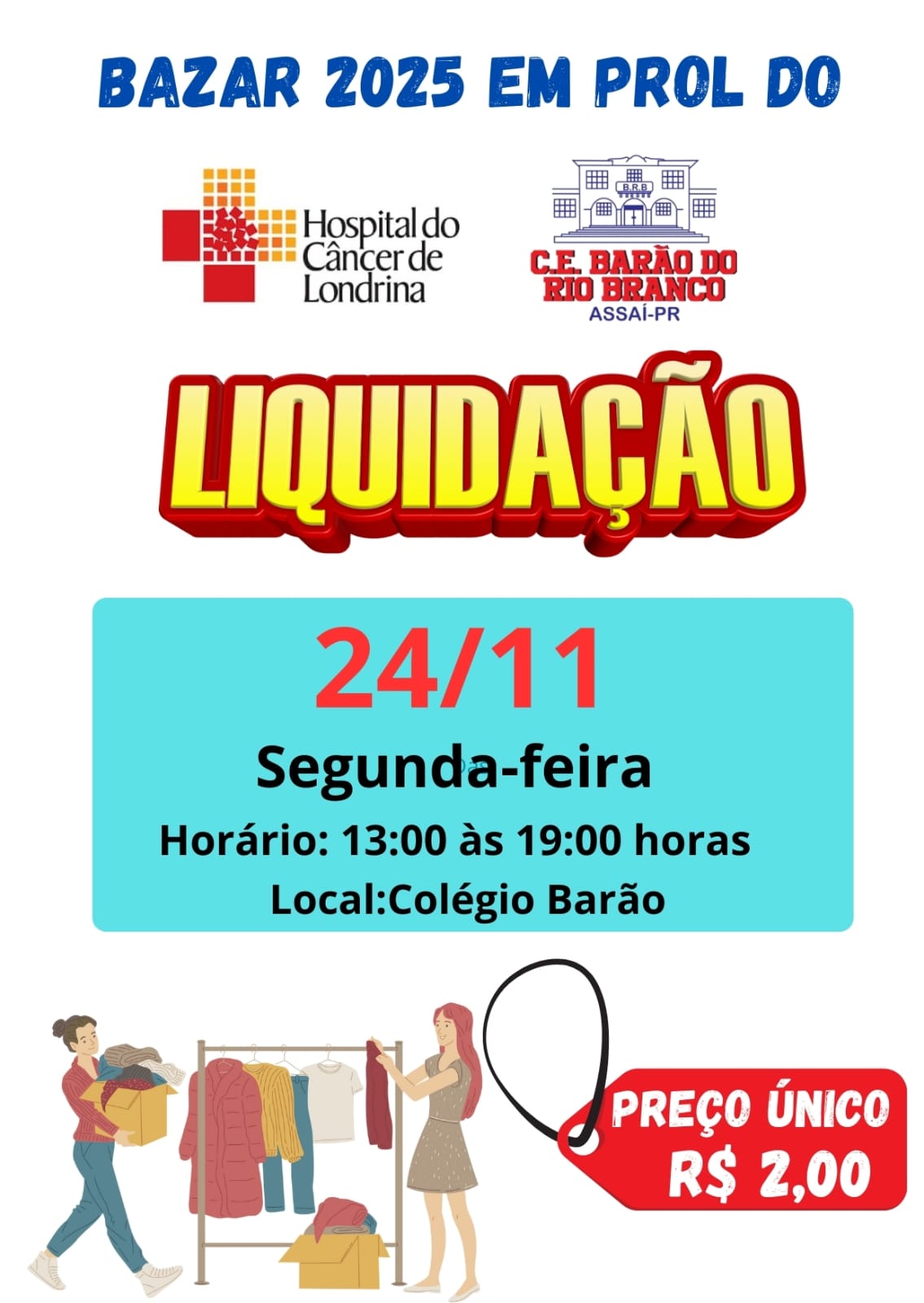 ASSAÍ - BAZAR BENEFICENTE, EM PROL DO HOSPITAL DO CÂNCER, NO COLÉGIO ESTADUAL BARÃO DO RIO BRANCO